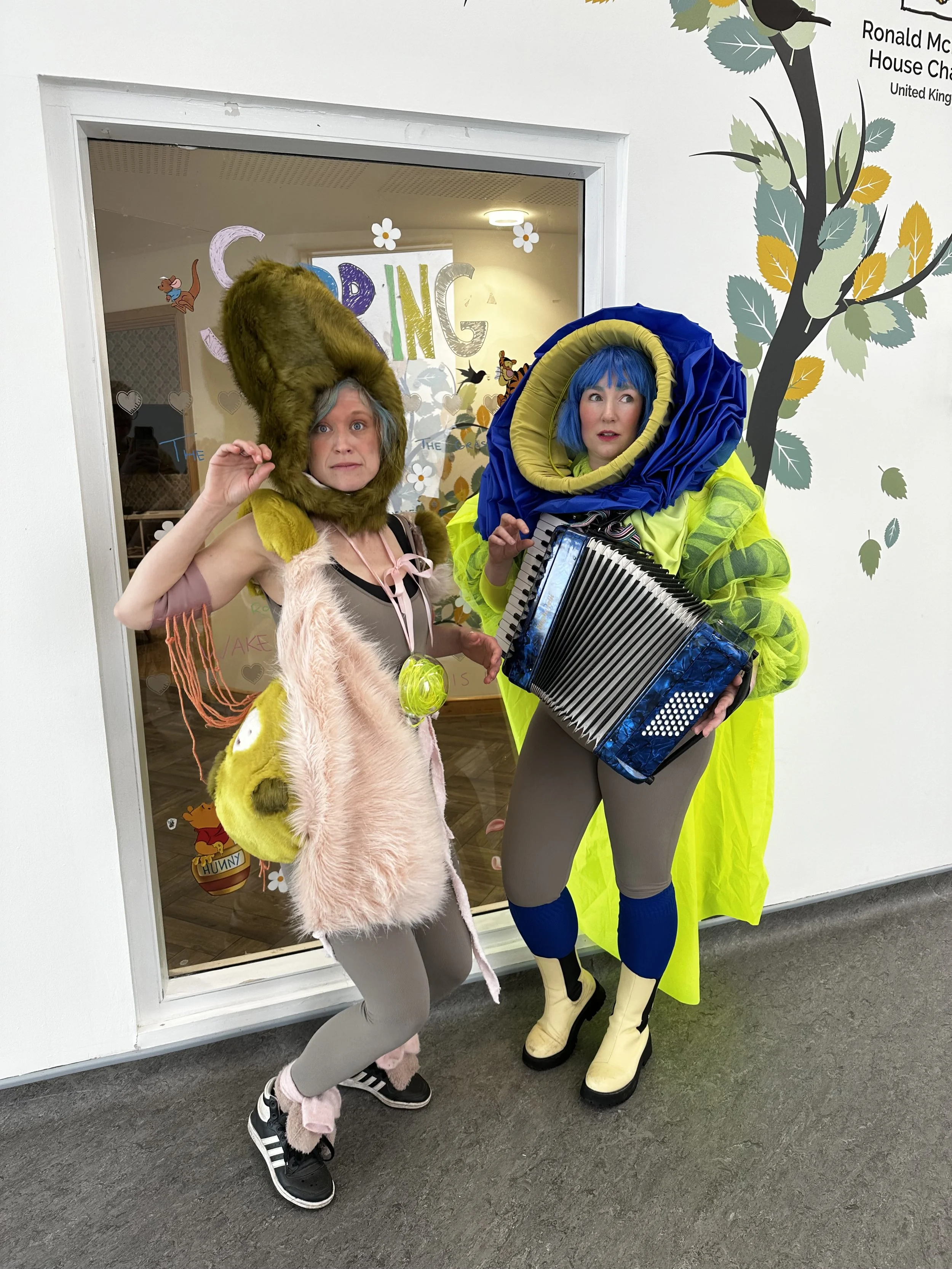 Performing as BumBum - a fabulously colourful and shapeshifting intergalactic host - and the glittering assistant Granite, Claire and Eszter deliver bedside performances to young hospital inpatients using live music, storytelling, games and clowning.